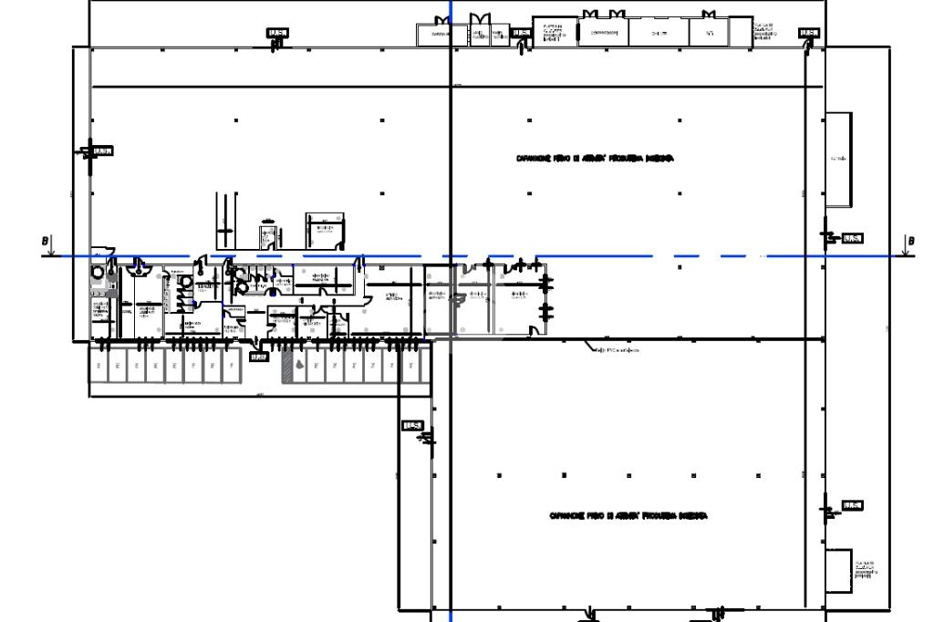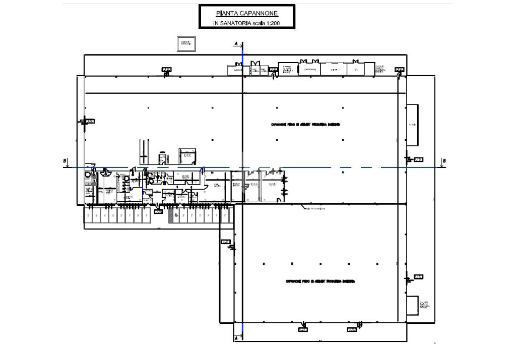 Capannone costruito agli inizi degli anni 2000 con struttura prefabbricata ad unico piano di calpestio fuori terra, dedicato a produzione, uffici e zona a servizi del personale. Impianti tecnici, centrale termica, cabina enel, locale cisterna di accumulo per Sprinkler. Zona di ingresso con guardiania, uffici, zone indipendenti adibite a vari settori tipo qualità e laboratori, varie zone spogliatoi, mensa e posti auto esterni. Riscaldamento a gas metano a servizio di tutto l'insediamento.