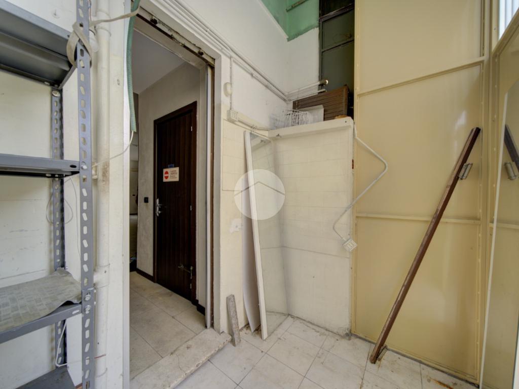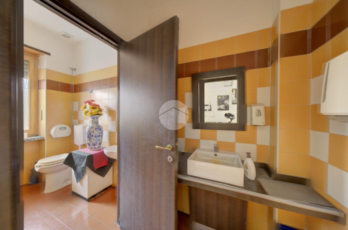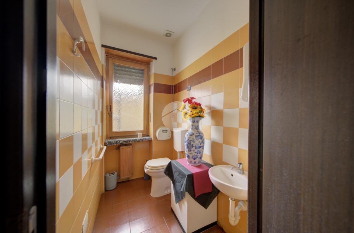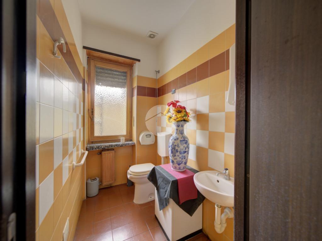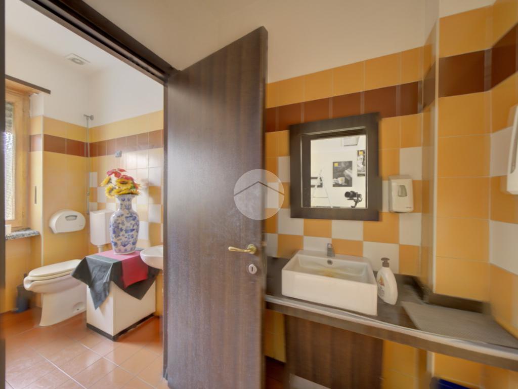 Composizione. Locale principale, locale retro, n. 2 antiwc, n. 2 wc, veranda cantina, carico e scarico da cortile.